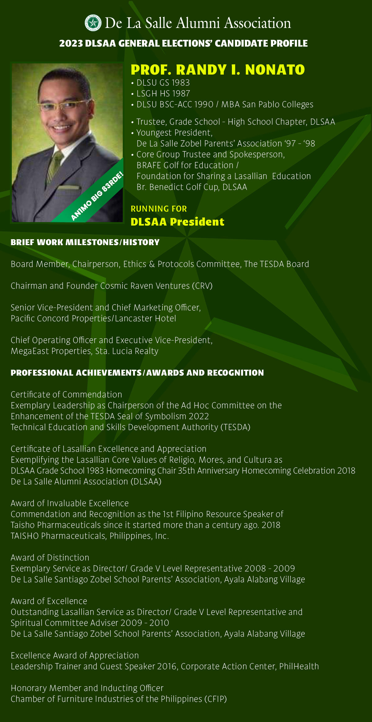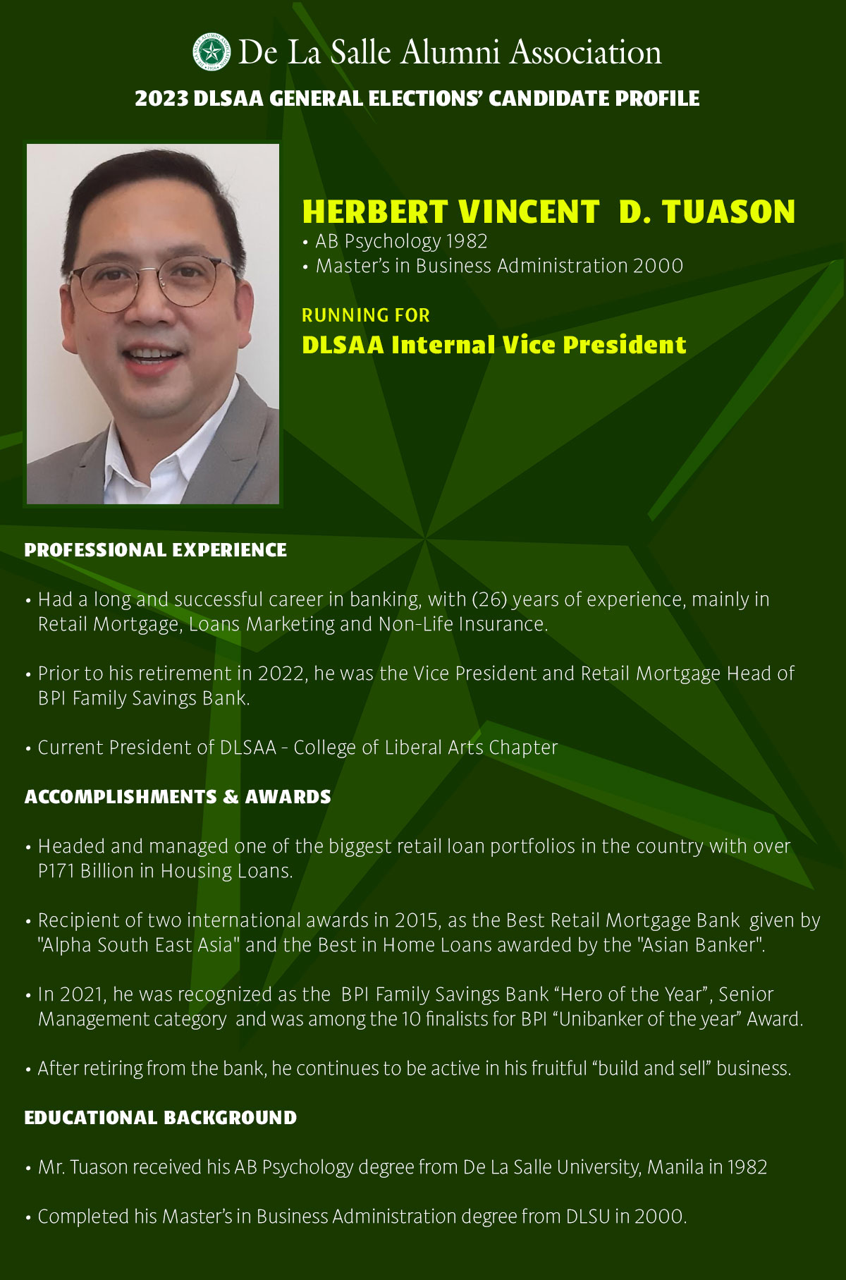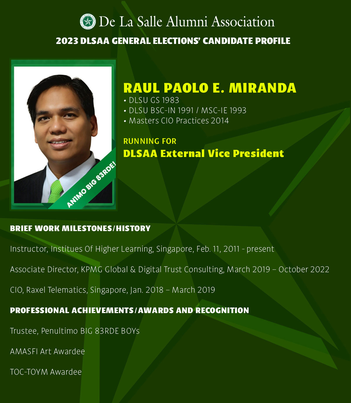 DLSU GS 1983, LSGH HS 1987, DLSU BSC-ACC 1990