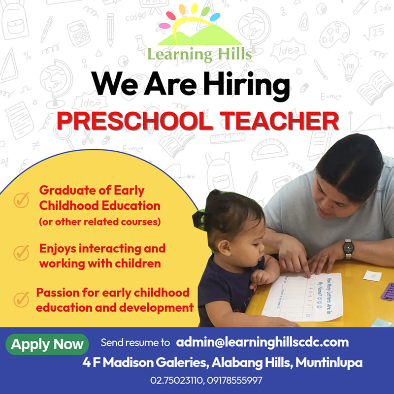 Interested candidates are invited to submit their resume to admin@learninghillcdc.com with the subject line “Preschool Teacher Application – [Your Name]” by