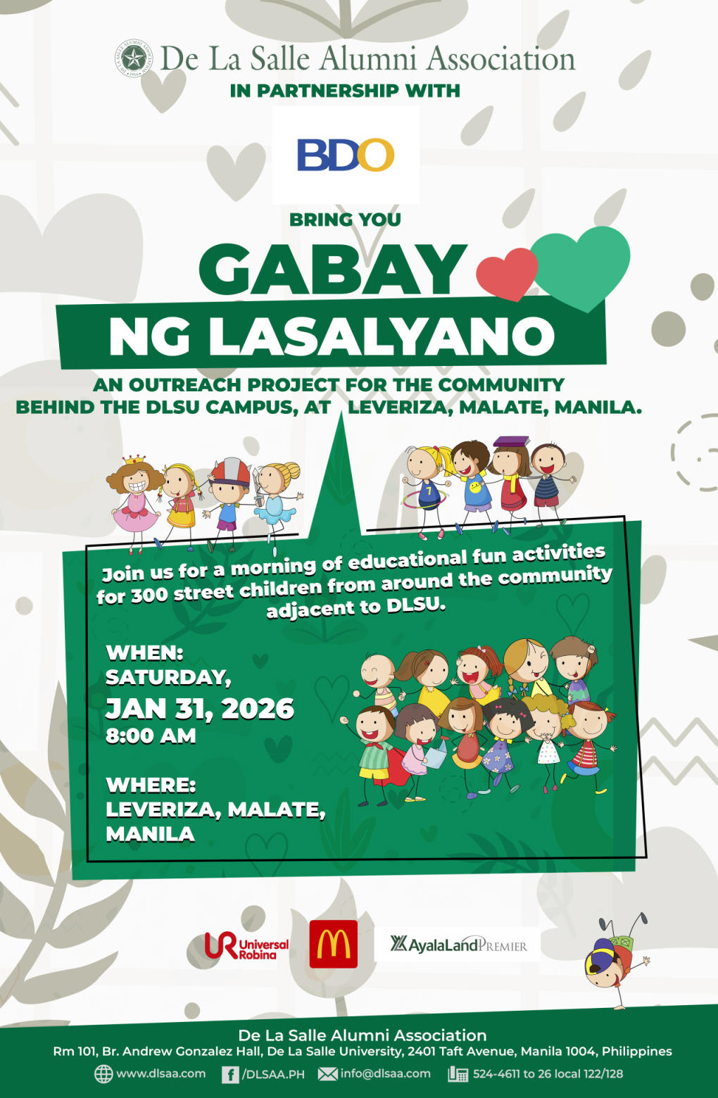 The De La Salle Alumni Association together with BDO Unibank, and Universal Robina Corporation are putting together an outreach project aligned with the values of St. La Salle.