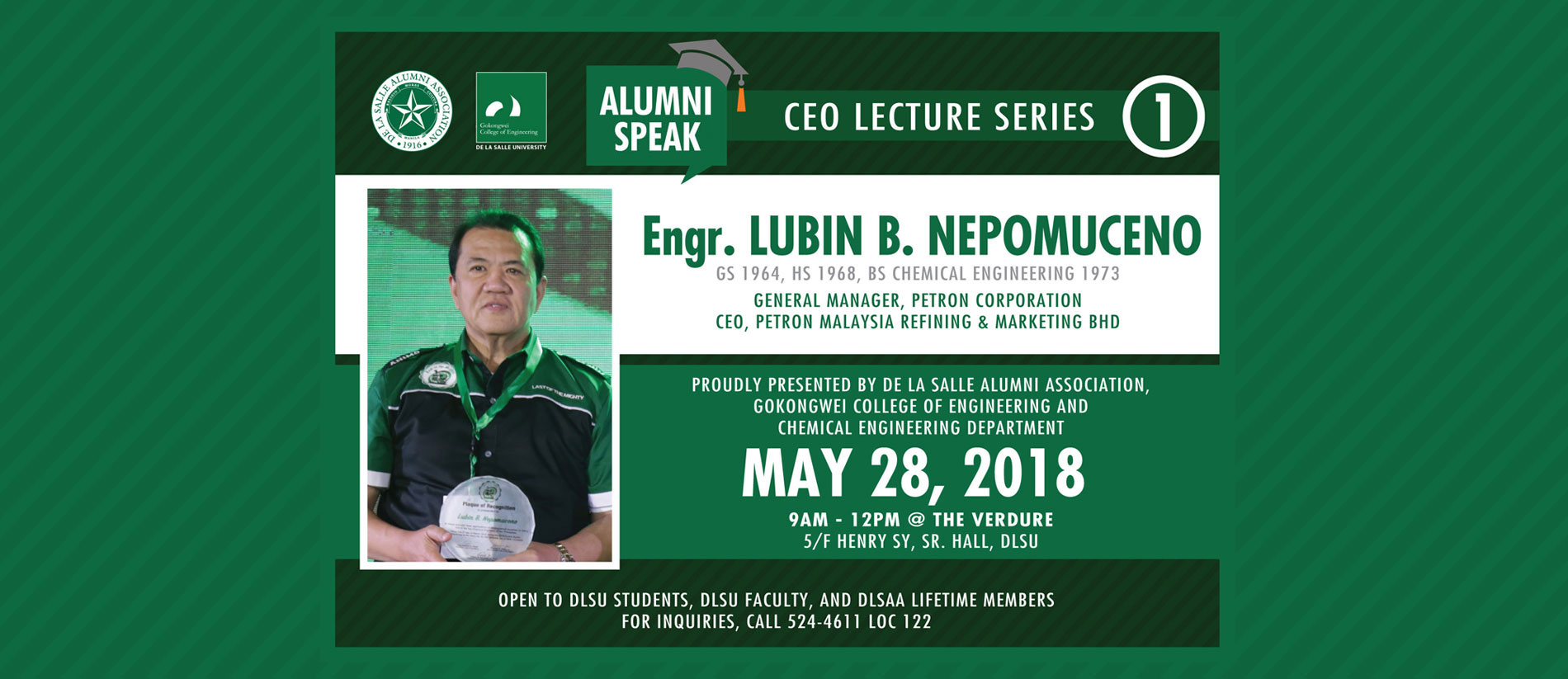 Come and learn how our guest speaker, Engr. Lubin B. Nepomuceno, climbed his way up to become one of our prominent LaSallian alumni.